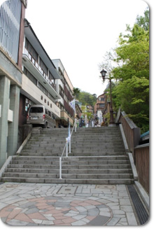 その日は新緑が美しく、また風も爽やかで、絶好の散歩日和でした。 伊香保の名物のひとつは、やはり石段ですよね。 一番下のあたりは補修工事中でしたが、それでも風情があっていいもんです。