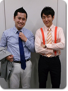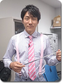 私、夕刊ではサスペンダー着用で、ジャケットを着ていません。