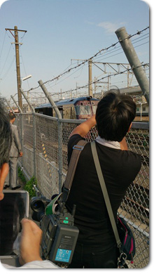発車するホームは、大勢の一般客や報道陣でごった返し、