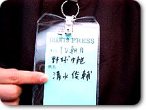 選手に接近できるのは、メイン球場からブルペン、室内練習場からサブ球場など、移動の時だけ。しかも巨人のキャンプ地はモノすご〜く広いので、選手達は車で移動してしまうのです。つまり、接近できるのは車に乗り込むまでのほんの数十秒。しかもしかも、有名選手ともなれば新聞記者や各局の担当記者が周りをグルリ。