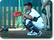 ここではスポーツ新聞の企画で、村田さんが期待の2年目・加藤投手のボールを受けることに。