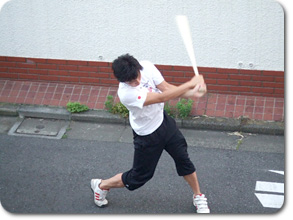 自宅前でほぼ毎日、こんな真剣な表情で素振りをしています。