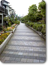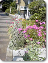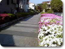 街中を歩いていきますが、意外に緑道が整備されていて、その沿道には木々や花が植えられています。
