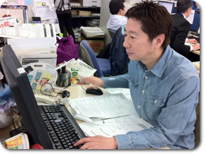 当日の全体打ち合わせが終わり、生放送のスタジオに向かう直前、ギリギリの慌ただしい時を過ごしている中、キーボードをパチパチ…。