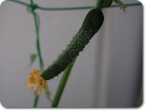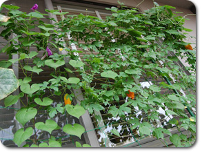 実は、東側の窓の前にできた緑のカーテンは毎朝、強い陽射しをシャットアウト。