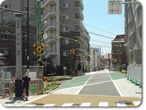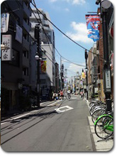 京浜急行の踏切を渡って進む道が今も残る旧東海道。ここから当時と同じ道幅の北品川の商店街が続きます。