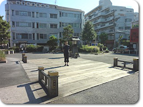 きっと広重の絵の様な立派な橋が架かっていたんでしょうね。今は、私鉄駅前のホントに小さな公園です。