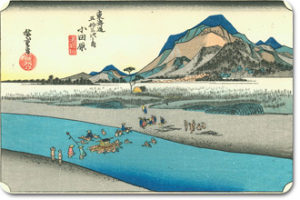 酒匂川の渡しは五十三次の難所の一つで、古くは船渡しが行われていましたが、