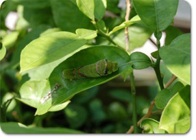 一方で、ミカンの葉をうまそうにアゲハの幼虫が食べて育っていました。