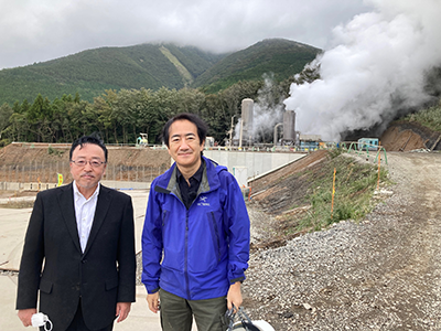 業務スーパー創業者・沼田昭二さんと地熱開発現場にて