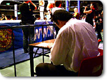 木村健悟さんは2003年4月に引退し、今は巡業の責任者として、各会場を取り仕切っています。そして、試合中には必ず、本部席に座り、試合を厳しい目で見ています。