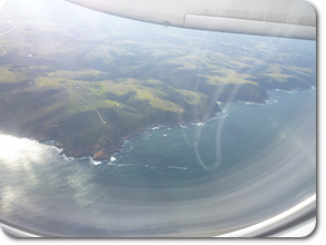 成田からシンガポールまで7時間。 シンガポールからヨハネスブルクまで11時間。 さらに日本代表のキャンプ地となるジョージまでは2時間。 飛行機に乗っている時間だけで20時間。 アフリカ大陸の南の果てまで、ついにやってきました。 赤茶けた大地をオレンジ色の太陽が照らす中、小型飛行機に揺られていました。 ジョージに到着するという機内放送が流れると、窓の外には、緑の絨毯が広がっていました。 「あれ、さっきまで、赤茶けた色だったのに・・。」 アフリカの大地はカメレオンのように衣を変えていきます。 緑の絨毯の中にはゴルフコースや、日本代表が練習するグランドもありました。 白茶のビーチにインド洋の大波が打ち寄せる海岸線にも心を奪われました。 上空から見るジョージの町並みは、「絶景」そのものでした。