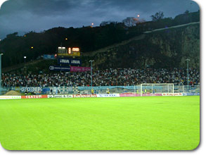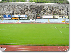 リエカのスタジアムは絶壁とアドリア海に挟まれた造りで荘厳 |