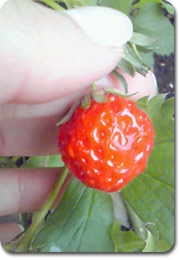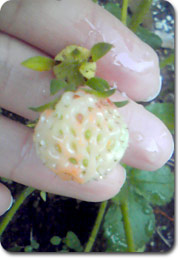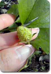 最初は緑色だった苺の実は、次第に色づき始め・・・ |