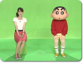 このように、背景が緑一色、セットが何も無いスタジオでの撮影ですが… |