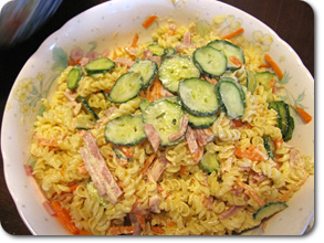 ちなみにこのキュウリは、母が作ってくれたマカロニサラダの仲間入りを果たしました。 |
