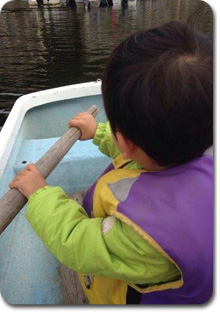 息子もボートのオールを持って漕ぎたがり、チャレンジしています☆