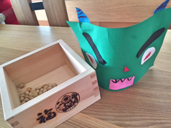 息子が幼稚園で作った鬼のお面が大活躍し、節分の日は我が家でも豆まきをしましたよ☆