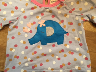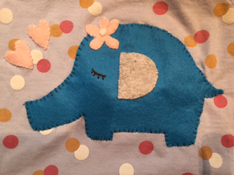 フェルトを使って手作りのゾウのアップリケを作り、洋服に縫ってみました!!