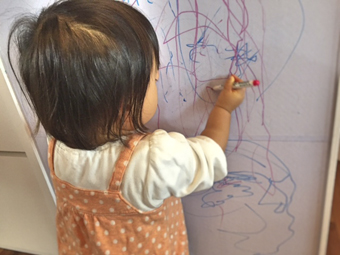 娘は最近お絵かきが好きな様子。自宅のホワイトボードで自由に絵を描いています。