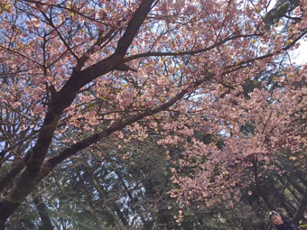 オオカンザクラの開花時期は、通常3月中旬くらいとのこと。ここ最近急に気温が上がったために少し早く咲いたのでしょうか。あまりにも見事だったので驚きました!