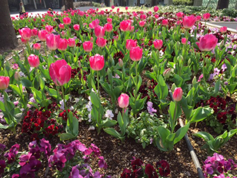 六本木ヒルズ内の花壇にも、チューリップやパンジーがたくさん植えられていますよ☆