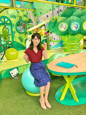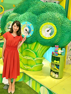 スタジオセットにも、あらゆる工夫が施されています。「健康」にちなんだグリーンのセットには、「ブロッコリー」のオブジェが置かれていたり、MCテーブルに座る私たちは、椅子ではなく「バランスボール」に座って進行しています!