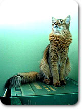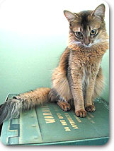 そのソマリは友人の家の「猫」となり、我が家もソマリを探しつづけた結果、ダータに出会うことができたのでした。毛の色が本当に微妙。こんな風に人間の髪の毛を染められたら綺麗だろうなーと思うほど、一本の毛の、根元の方と先の方とで色が変化しているのです。