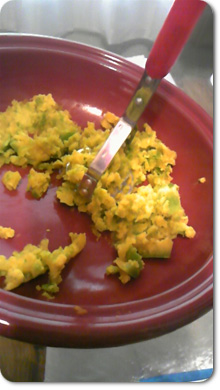 まずは柔らかくしたかぼちゃをマッシュ。 |