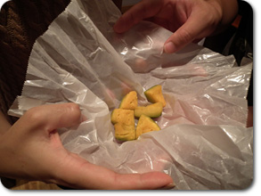 こんなに少ないのを、みんなが食べられるように、さらにカット( 笑) |