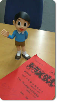 出木杉くんのフィギュアと[日食を見よう]の回の台本です。