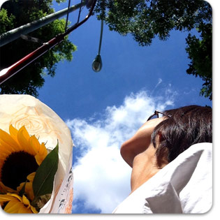 矢島さんが、ステキな向日葵と一緒に撮影してくれた写真たち。