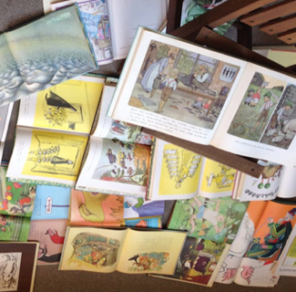 40年モノの絵本、ベランダで天日干しの図^^さすがにカビ臭くなっていたのでお手入れしました。