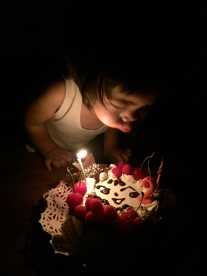 2歳に。ケーキに、チョコレートで顔を描いてデコレーションしてみました。