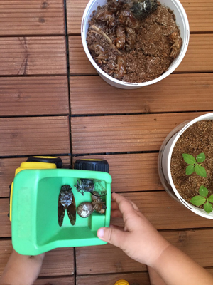 ベランダには、2歳になった息子による蝉の抜け殻コレクションなどがたくさん。