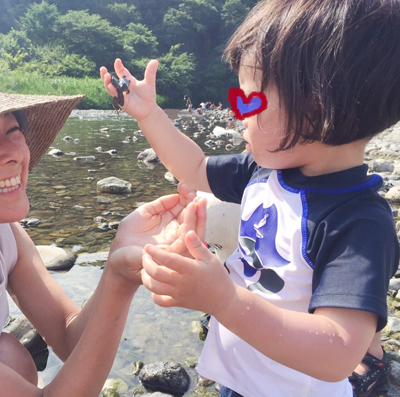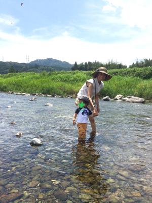 ドラえもんファミリーBBQにて、はじめての川遊び