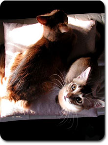 最近、もう一匹猫がほしいと思い始めた私です。身体的に猫アレルギーという事情があることからずっと犬好きと決め込んで生きてきた私ですが、ソマリ(猫の種類)にハートを射抜かれ一緒に暮らし始めてからというもの、猫最高。猫が大好きで大好きでどうしようもありません。ぶつぶつの湿疹が出ようとも目が真っ赤になろうとも、丸め抱きつきたい衝動を抑えることができません。叶うことなら顔にかぶったまま会社に行きたい。本当に好きというのはアレルギーをも凌駕するということなのかと思う今日この頃ゴロゴロゴロロ。今いるソマリの親仔に加え更に同居したいのは、ターキッシュアンゴラという猫です。 |