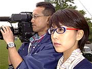 突然取材陣の方に飛び込んできたボールがフェンスにぶつかり、