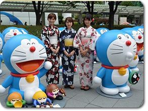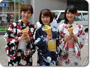竹内アナと宇賀アナと夏祭りの取材内覧会で回ったとき、浴衣で写真を撮りました!