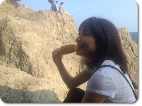 海を眺めながらの焼きトウモロコシ。