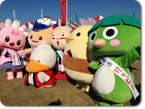朝からたくさんの「ご当地ゆるキャラ」がずらり勢ぞろい。