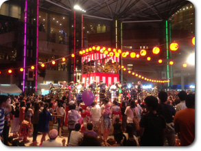 会社すぐ横のアリーナにはやぐらが組まれていて、まさに盆踊りの最中。
