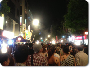 両脇に屋台がずらっと並んでいて、前に進むのもやっと…といった状況。