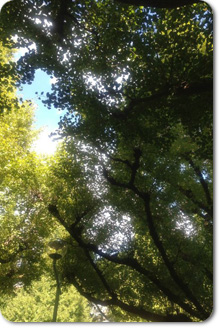 青空のもと、まだ緑の銀杏が輝いて見えました。