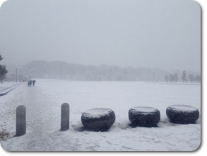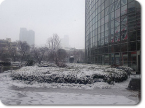こちらは2月8日の大雪の時、会社の隣にある毛利庭園の様子。