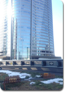 テレビ朝日屋上テラスの芝の上には、まだ雪の塊が…