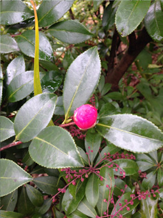 春を先取りして、早咲きの椿がつぼみや花を付けていました。