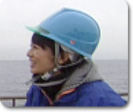 上る時ヘルメットをかぶりました。