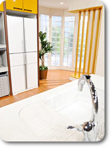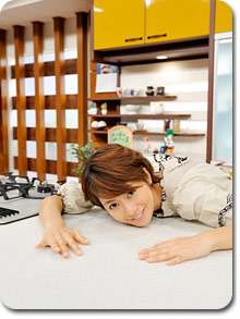 真っ白でツルツルの綺麗なお料理台に、思わず頬ずり。 |