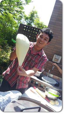 あ、そう、それです。ナンです!タンドールの壁にペタっと貼り付けて・・・ |